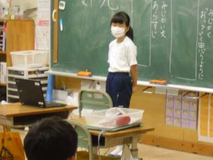 「こんなあそびをしたよ」のスピーチがいよいよ最終回をむかえました。いろいろなお話を聞くことができて、とても楽しい時間でした。スピーチが終わると、友だちからの質問に答えます。