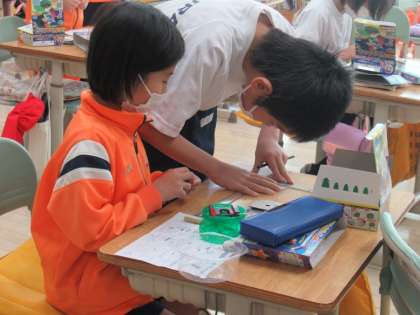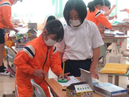 3年生の理科では、磁石の性質を利用して、いろいろなおもちゃを作っていました。ルーレット、コアラの木登り、動く亀など、直接触らなくても、楽しい動きをするおもちゃがたくさんできていました。