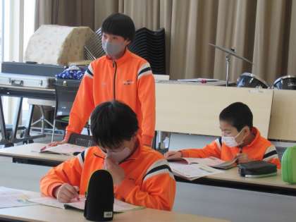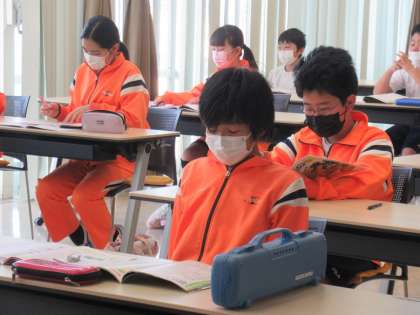 5年生の音楽の授業です。自分の考えをしっかりと発表していました。