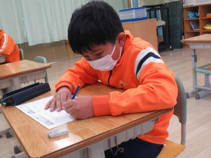 算数では、いろいろな問題に挑戦していました。やり方を思い出しながら、集中して取り組んでいました。
