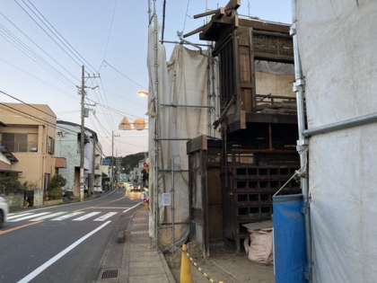 獅子浜の国道414号沿いで、住宅の解体工事をしています。