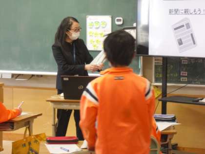 質問コーナーでは、新聞社や新聞記事、新聞記者について、いろいろなことが質問され感心しました。質問のひとつに対して「おもしろがって読んでもらえるようにしたい」という答えがたいへん印象的でした。