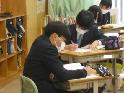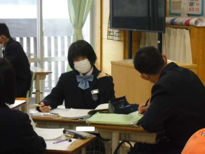 「証明」の問題にチャレンジしていました。個人で考えた後、グループで答え合わせをします。