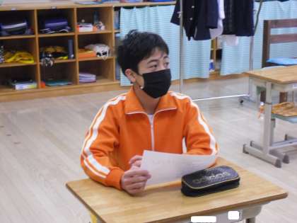 小D 「こんなものがほしいなぁ」の文を読んで、自分のほしいものについて作文を書きました。その発表の練習をしています。
