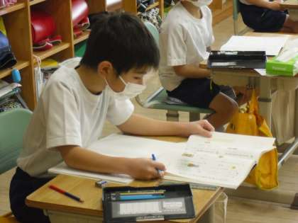 「二つの漢字でできたことば」について勉強しています。「日光→日の光」、「白馬→白い馬」などの後、「強弱」について考えているところでした。