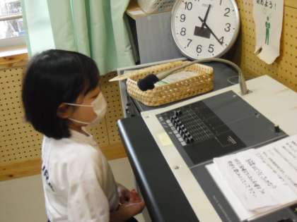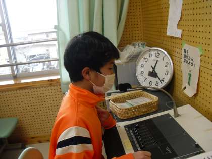 給食委員会の活動として、各学年の委員や代表が、昼の放送の時間に、給食への感謝や、栄養士さん、調理師さん、調理員さんへの感謝のメッセージを放送します。