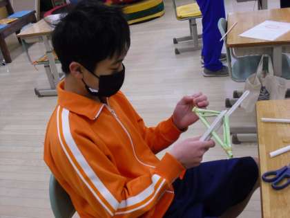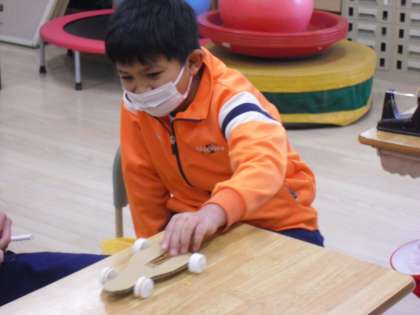 小C 理科 ゴムの力を使ったおもちゃ作りも完成が近づいてきました。車のスピードも、クロスボーの威力も増しています。