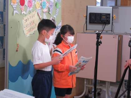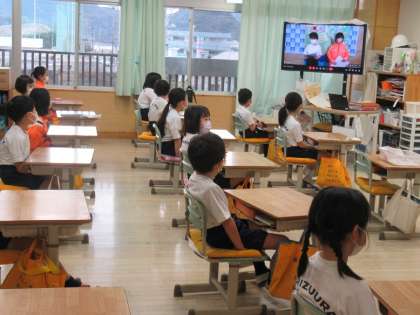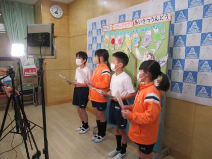 3・4年生の志部委員が中心となり、会の運営、進行を行っていました。最初の計画では、体育館で、1〜4年生全員が集まって実施する予定でしたが、コロナ感染拡大により、リモート開催に変更しました。
