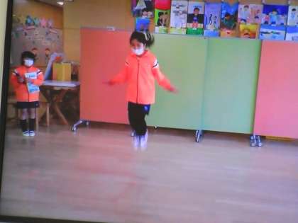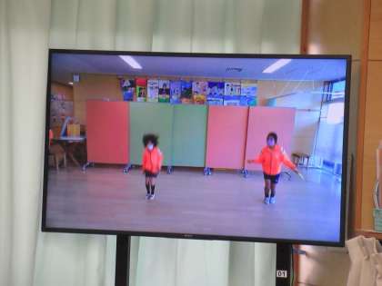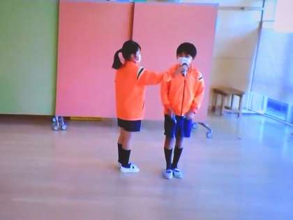 12月から取り組んでいるなわとび運動で、カードが進んでいる子供たちによるなわとびの技の紹介がありました。これも事前に録画したものを教室で流していました。