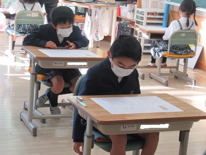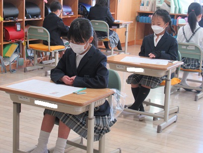 学年末テストがいよいよ配られました。少し緊張気味に、開始の合図を待ちます。