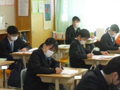 学年末テストが返ってきました。解説を聞きながら、間違い直しをしているところです。