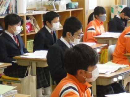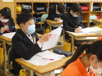 学年末テストの振り返りをしていました。先生の解説を真剣に聞いています。