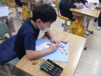 「さわっておどろく」とは、どんなことなのか、仲間と意見交換して発表していました。ノートにまとめ、先生の次の質問を聞いているところです。