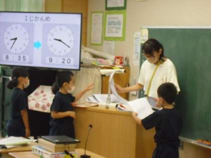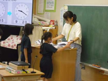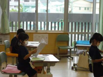 テストの返却です。テストを返してもらい、とてもうれしそうです。しっかりと見直しをしていました。