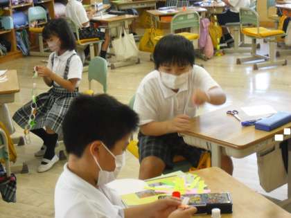 「七夕集会の準備とリハーサル」七夕集会に向けて、グループで飾りを作ったり、計画の確認をしたりしていました。明日の夜が晴れるといいですね。