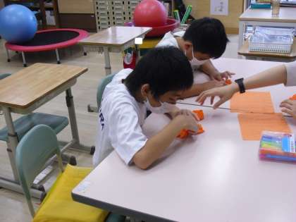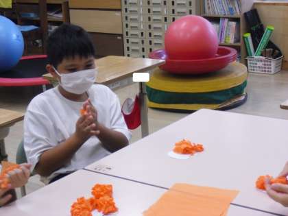 季節の行事の学習として、ハローウィンの掲示物を作っていました。完成が楽しみです。
