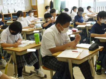 等式の性質を確認し、ノートに丁寧にまとめていました。この後、この性質を使って方程式を解いていきます。