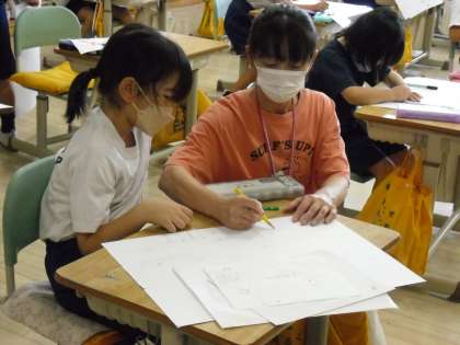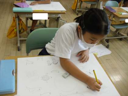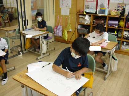 お話を聞いて想像した世界を描いていました。自分の思いでどんどん描いていました。すてきな絵です。