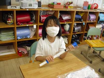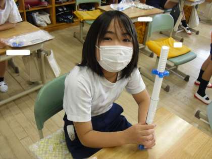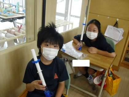 「空気と水」の学習です。「水をとじこめたら体積の大きさや手応えはどうなるのか」一人一人体験することで実際に確かめながら学習を進めていました。