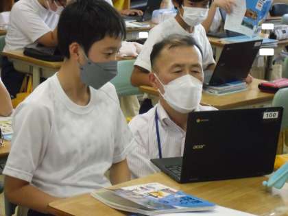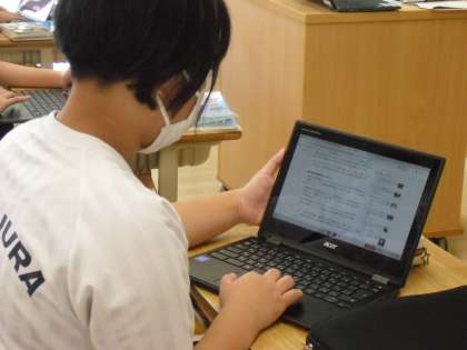 「源頼朝はどのようにして武士たちを従えたのだろう」について資料集やchromebookを使って調べ学習を進めていました。