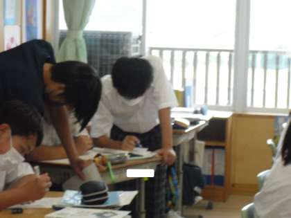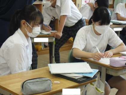 2次方程式のまとめを行っていました。お互いに方法を確認し合う場面も見られました。集中して取り組みました。