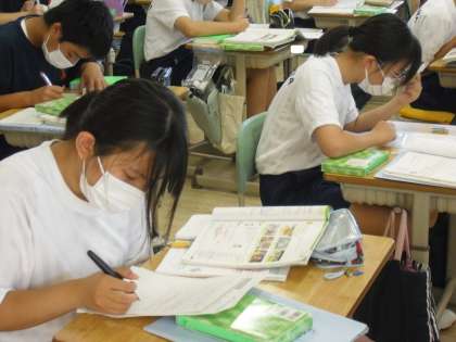 不定詞の形容詞的用法の学習をしていました。テキストの会話を聞きながら、重要事項のチェックをしているところです。