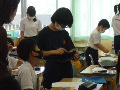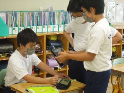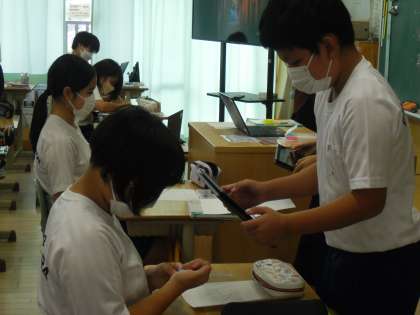点対称の作図の仕方をChromeBookでまとめ、友だちに説明しているところです。