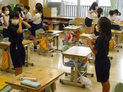 「糸電話」紙コップと糸を使って糸電話を作りました。友だちの声はよく聞こえるでしょうか。