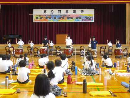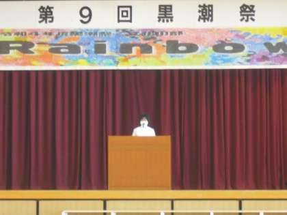 黒潮祭 文化の部が行われました。オープニングは文芸部の太鼓の演奏でした。開会の言葉に続いて、初志部から発表です。