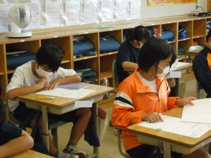 「文字式」単元テストを行っていました。真剣に取り組んでいます。