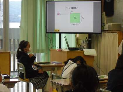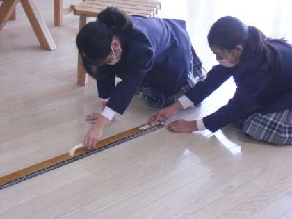 ろうかで10mをはかっていました。10アールとはどれくらいの広さか、よくわかったようです。