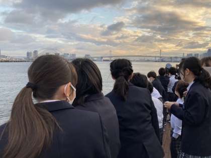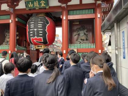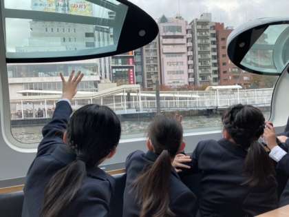 雷門を見学してから、隅田川を「ホタルナ」で下り、日の出桟橋を目指します。