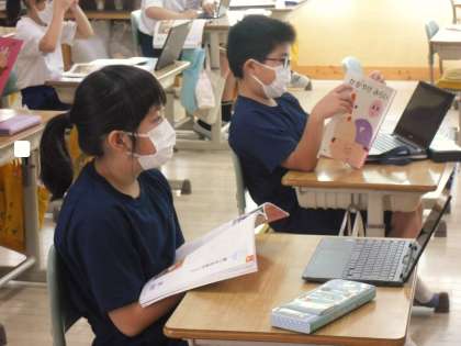 「車いすをあやつって」資料を読む前に、Chromebookで車いすバスケットの様子を見ることになりました。