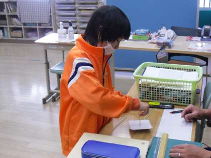 小D 算数 コンパスで描いた円を利用して、コマを作っています。