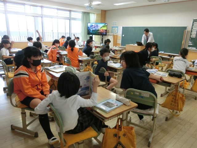 5Aでは、理科の学習をしていました。学習問題について、友達と意欲的に話し合っていました。