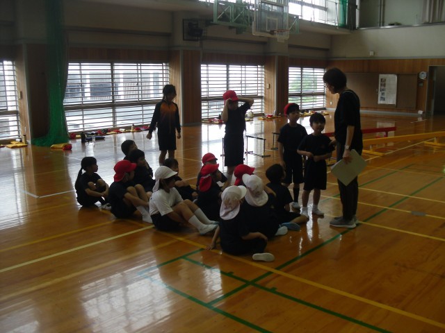 初志部では、毎朝、表現運動の練習を頑張っている姿が見られます。今日は、3時間目に初志部の子どもたちが出場する種目について、集合の仕方や動き方について確認をしました。