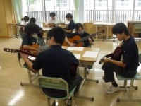7Aの音楽では、「ギター」の学習に入りました。ギターがどんな楽器か確かめた後、実...