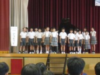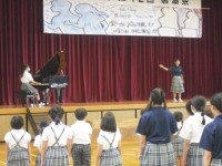 2Aは「あおいそらにえをかこう」です。担任の先生の歯切れよい伴奏に合わせて、元気...
