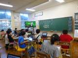 概数の勉強です。自分の考えをもった後、友達の考えと比べるために、Chromebookを活用しました。同じ考えや違う考えがモニターに映し出されるので、一目瞭然です。