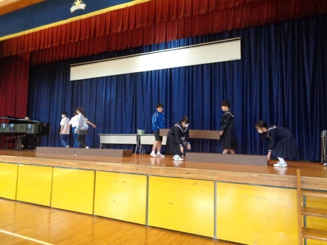 出演時の入退場やステージの立ち位置、楽器・ひな壇の出し入れや司会といった係の活動など、本番に近い形で確認をしていきました。