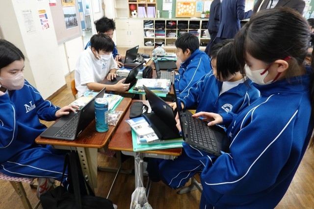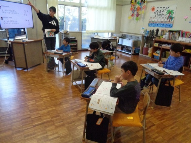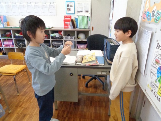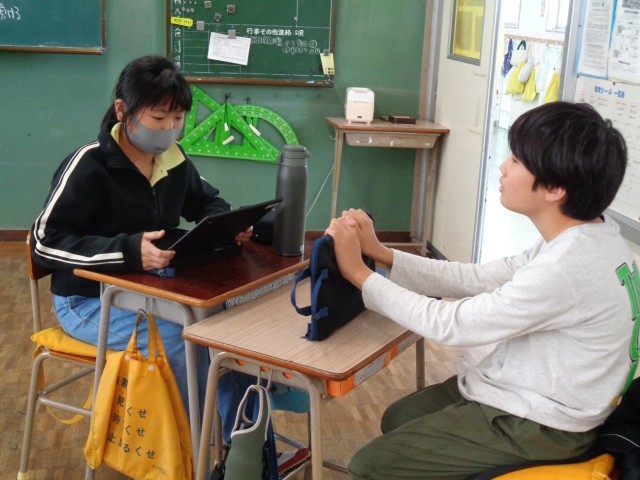 友達と出題し合ったり、先生のところに行ってテストを受けたりしています。