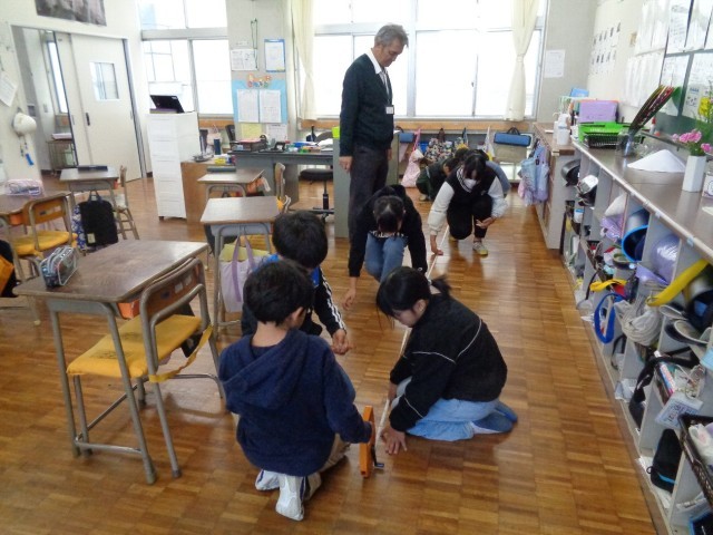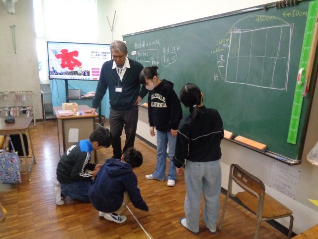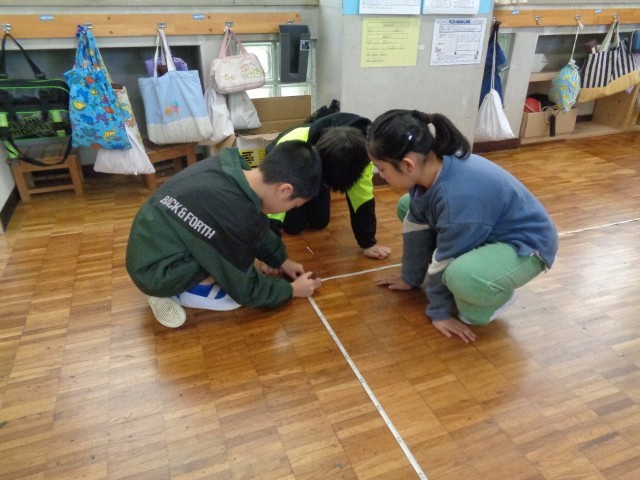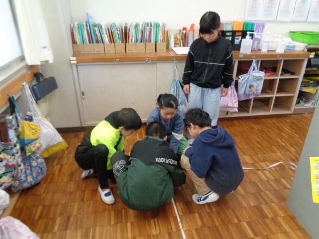 大凧がどのくらいの大きさなのか、教室の中で長さを測ってイメージしてみました。