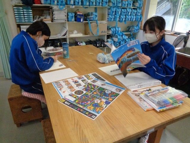 切り絵の技法を生かし、色せろはんでステンドグラス風の作品を制作します。