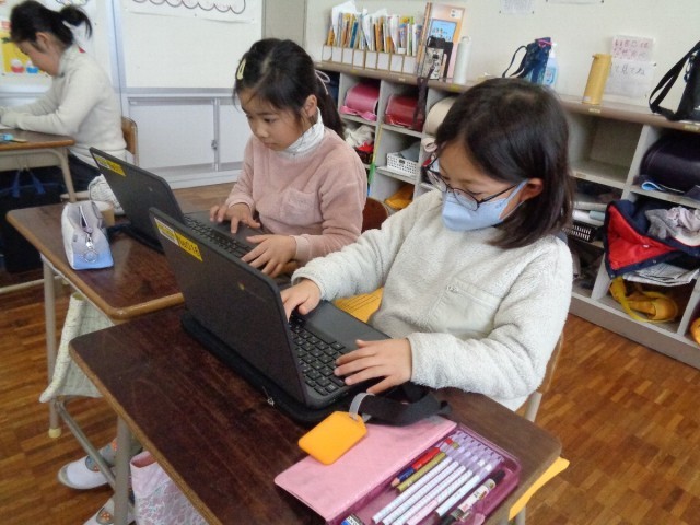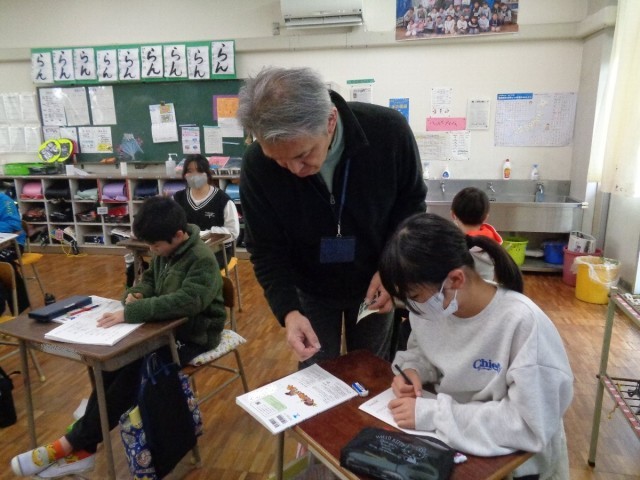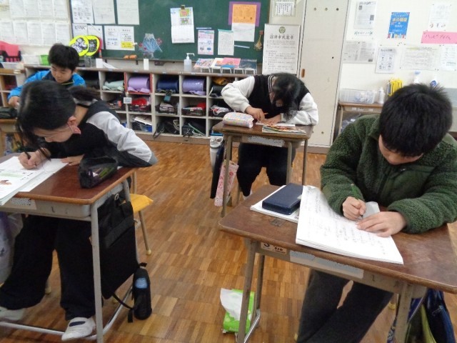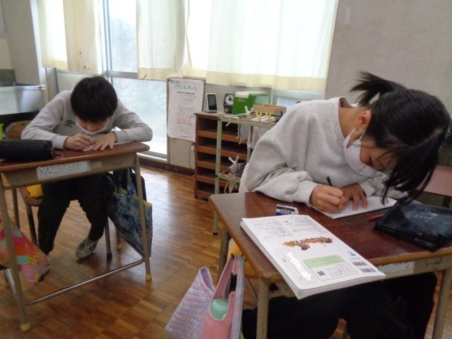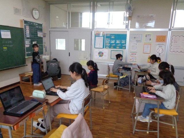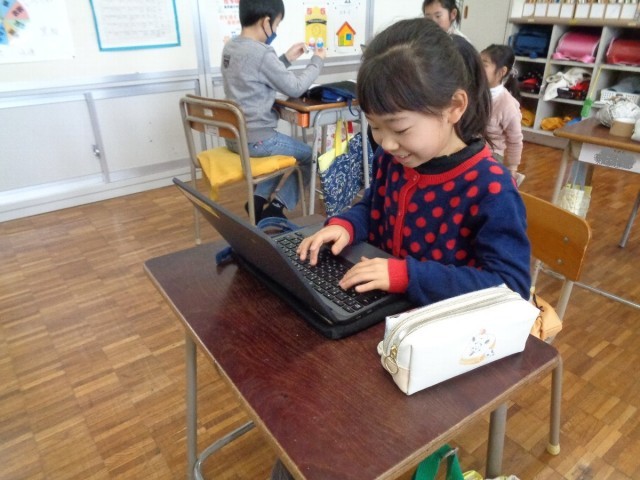 子供たちは行き詰まると、答えになる漢字を探してしきりに教室内をキョロキョロ見回していました。