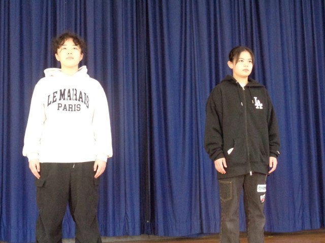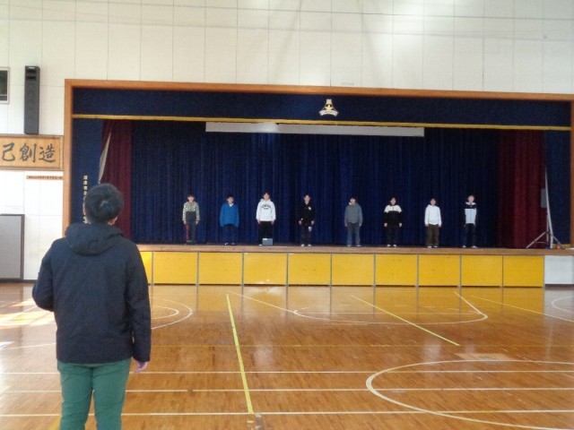 今日は初めて会場の体育館で呼びかけと合唱の練習をしました。