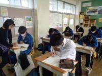 放物線になるグラフの特徴を、xとyの数値の変化に着目しながら考えています。