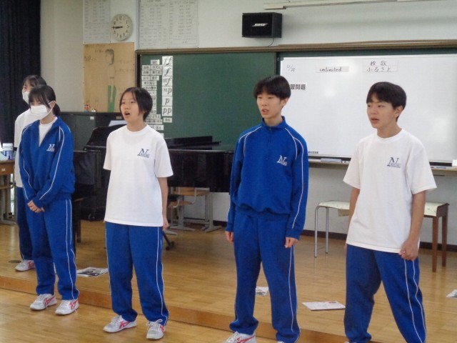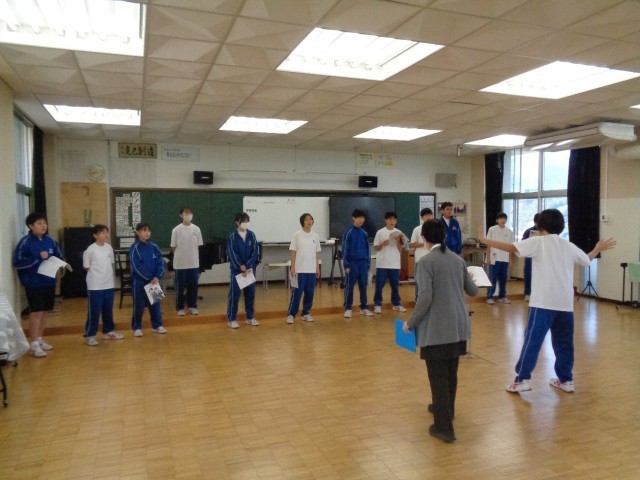 授業の後半は、音楽発表会を意識して体育館で歌ってみました。