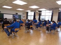 昨日、各地区に足を運んで調べてきたことをもとに、地域の防災についてどのようにまとめるか相談しています。