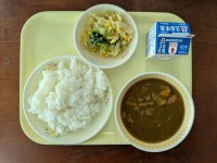 本日の給食は、中華めん、牛乳、野菜みそラーメンのスープ、黒はんぺんと小魚のからあげです。