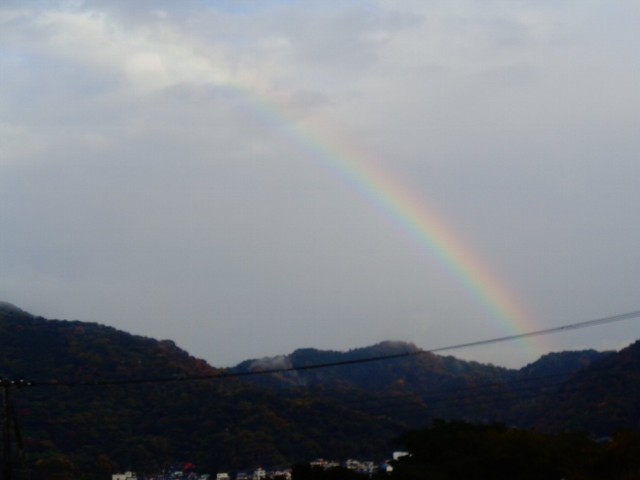 子供たちの下校の準備をしているころ、北東の空に虹がかかりました。